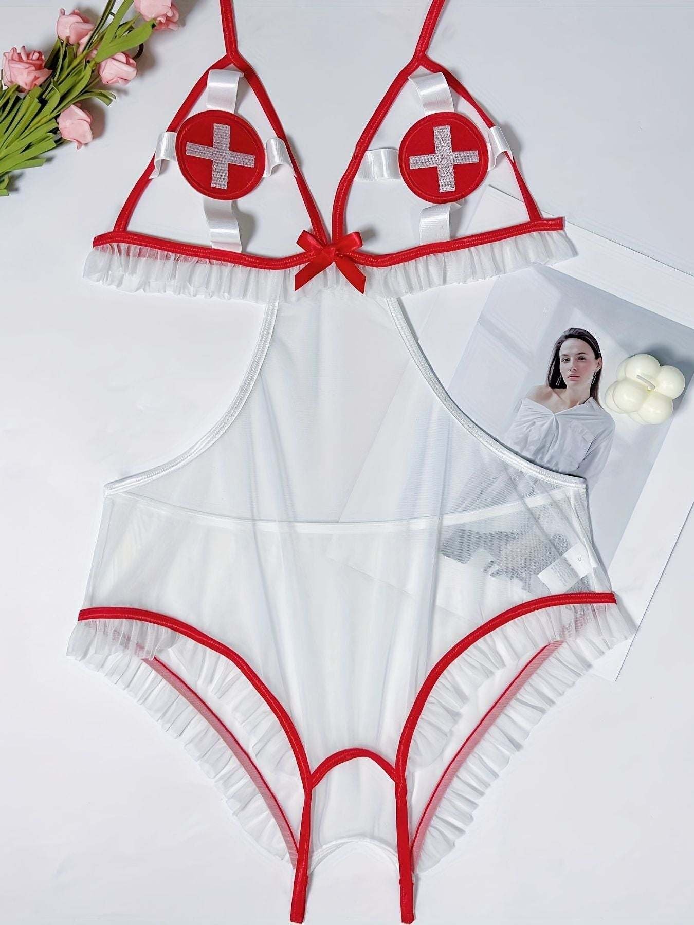 Sweet Nurses Uniform Sexy Seduction Mesh Open One Piece Sexy Lingerie Women